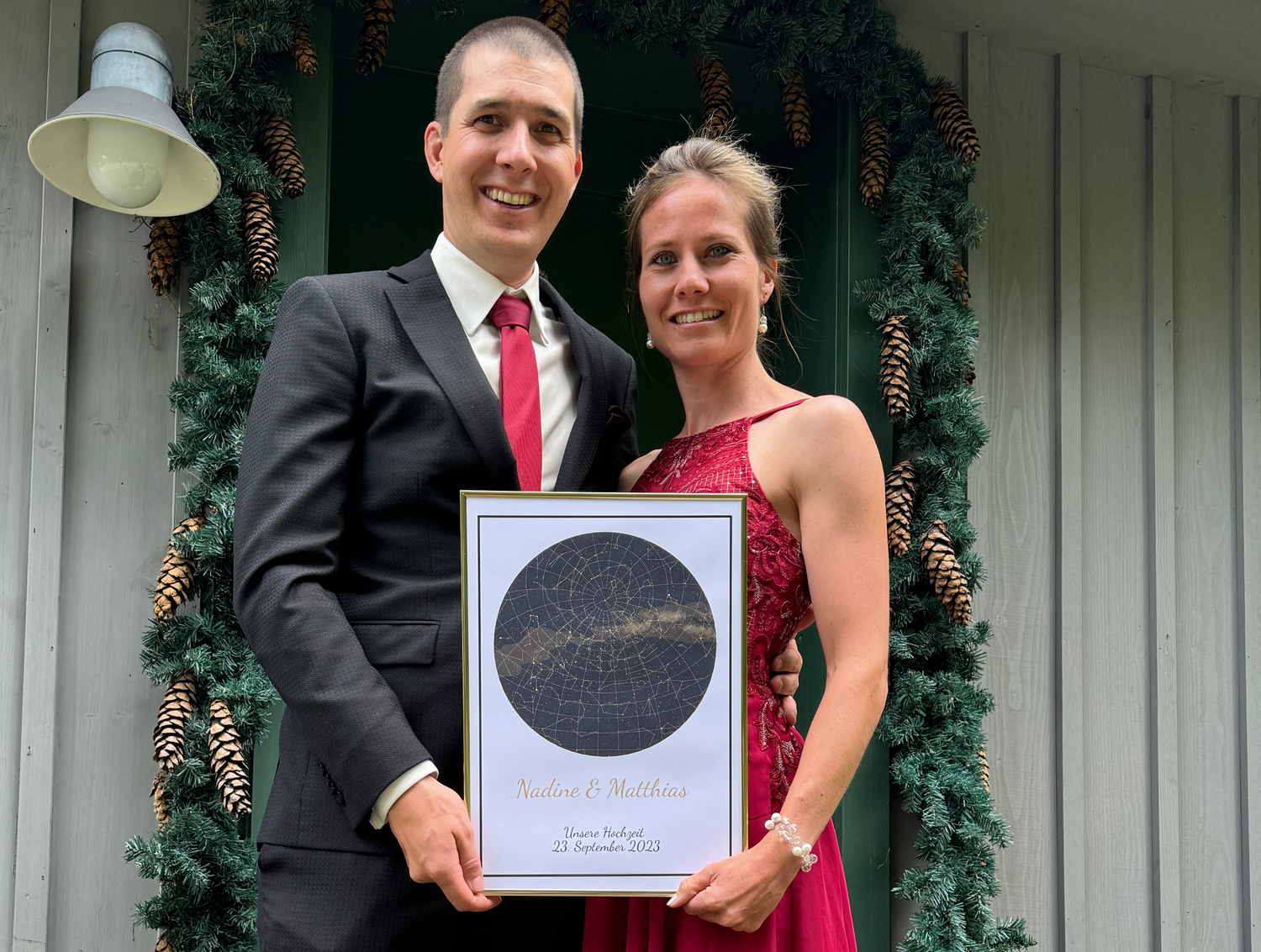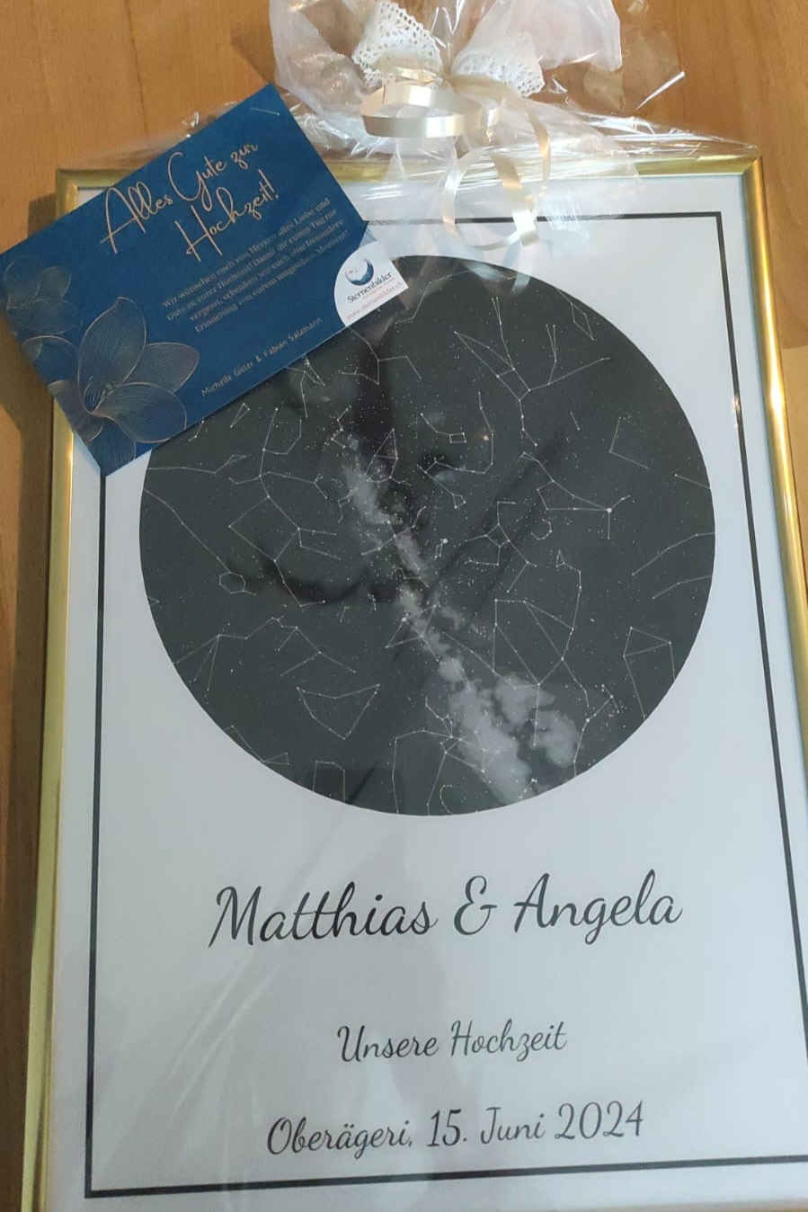 Halte den besonderen Tag zweier Menschen in Form eines Sternenbildes fest. Das perfekte Geschenk als Gast oder halte deinen Hochzeitstag in liebevoller Erinnerung für die Ewigkeit.